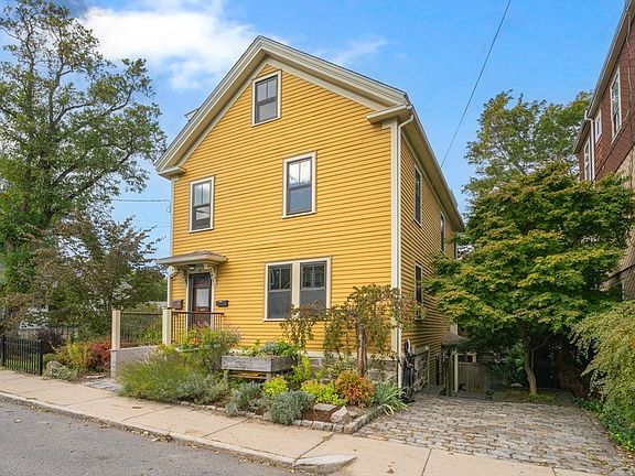 Near Arnold Arboretum, a 3-plus bed, 2 bath single family and 1 bed, 1 bath apartment with parking, blocks to Forest Hills T. Of 1880s vintage and tucked on a gentle hill, its secluded fourth-story deck faces the arboretum. The main house features three levels. The first floor greets with a large living room and semi-open kitchen and dining room. The kitchen, with dining peninsula and extensive storage, opens to a covered deck. The second floor offers two sizable bedrooms, one with an adjacent office or studio, and a clawfoot tub bath. A pass-through room leads to an expansive skylit top-floor primary suite with dressing room, double-vanity bath, and private deck. On the rear garden level, the 375 sq ft one-bedroom apartment has patio entry. Bluestone wraps the rear and side yard, leading up to the driveway with EV charger. On a one-way block in Jamaica Plain’s Arborway area, just 0.2 mi to the arboretum and short blocks to the bookstore, bakeries and cafes of Centre-South Streets.