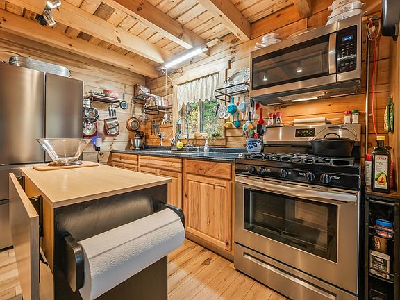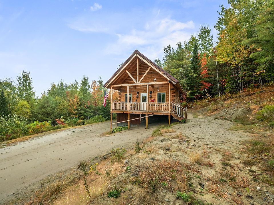 FULLY FURNISHED 2 bedroom log home on 5.45 +/- acres offers convenience and privacy all year long! This 2022 home features a covered porch where you will spend many summer evenings. Open concept main living level has the dining area lead into the compact kitchen which has a lot of cabinets for storage and a large pantry as well. First floor bedroom and 3/4 bath with incerating toilet make this a great single-level home. Living room which has the pellet stove features cathedral ceilings up to the loft where the second bedroom is. The basement is accessed from the outside only and is currently unfinished but could be finished off into more living space or continue to be used as storage/workshop space. The house being just under 900+/- square feet, this home is cozy, easy to maintain and easy to operate! Ideal for someone just starting out or someone who wants a cabin in the woods for a White Mountain retreat. 2+/- miles back to Main Street for shopping, dining and entertainment and a shorter distance to Meadow Street for your big box stores and access to I-93. Minutes to Littleton Regional Healthcare and Moore Dam Reservoir for summer fun, this location is perfect for everything!