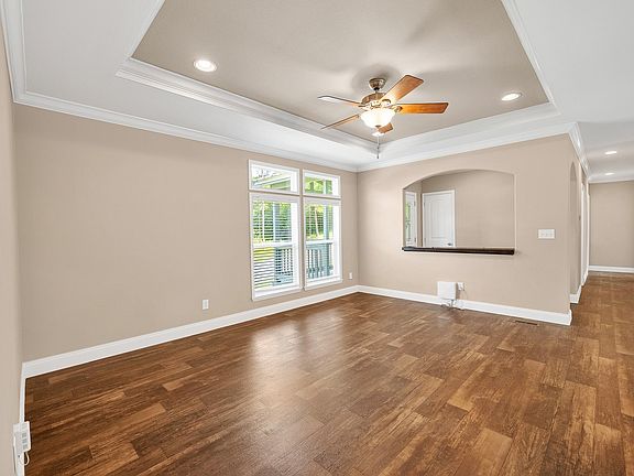 This beautiful 3-bedroom, 2-bath modular home sits on four spacious lots and features a concrete driveway. Inside, you'll find finishes including sheetrock walls, crown molding, 8-inch baseboards, and granite throughout. The kitchen offers a gas range, large sink, gallery stainless steel appliances, and opens seamlessly to the dining and living areas. The primary suite is filled with natural light and boasts a huge walk-in closet, while the ensuite bath features double vanities, a custom ceramic-tiled shower with multiple showerheads. The two additional bedrooms are spacious with great natural light, and the guest bath includes double sinks and plenty of room. A large laundry room offers a sink, countertop space, and extra storage. Enjoy lake views from the covered back porch, while the front porch provides a warm welcome. This lake community includes a boat launch, fishing pier, swimming pool, and a waterfront pavilion—everything you need to enjoy the lake lifestyle to the fullest!