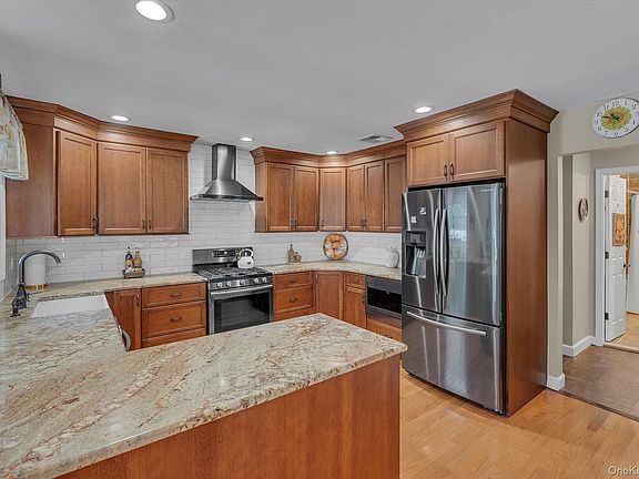 Significant upgrades and quality craftsmanship define 41 Landing — a move-in ready opportunity in Port Jefferson Village’s coveted Harbor Hills neighborhood. Just three minutes from the the Village’s downtown waterfront district and under five to the PJ Country Club and Village beaches, this deceptively spacious ranch impresses from the moment you enter. An open layout connects the oversized living/dining room — anchored by an original brick fireplace, picture window, and built-in bar with pantry — to the fully renovated 2020 kitchen. Thoughtfully designed with black stainless-steel appliances (5-burner gas range + hood), granite counters, Zellige-style tile backsplash, farmhouse sink, and ceiling-height cabinetry, it flows into a vaulted family room with beamed ceilings, wide-plank flooring, and a fieldstone clad electric fireplace (with gas line). A twelve-foot French slider (2022) opens to a 2022 constructed TimberTech deck (approx. 19 x 27.5) overlooking the 20 x 40' in-ground pool (Loop-Loc cover 2020; new pump & chlorinator 2025). The fenced backyard (2021) is ideal for summer fun, also featuring a natural-gas BBQ line, 2023 shed, and upgraded outdoor electric (2024). Back inside, two comfortably sized bedrooms share a hall bath with classic tile, soaking tub and granite vanity, while the primary suite offers dual closets and a fully updated ensuite (2024). Crown moldings, recessed lighting, upgraded hardwood floors, and wide-plank vinyl flooring are consistent throughout. The lower level adds exceptional flexibility, complete with three egress-style windows, incredible closet space, a tremendous laundry room with utility sink, bonus room, and brand-new carpeting. Additional noteworthy system and structural upgrades include a nearly new (2024) 50-year GAF roof & gutters, updated Andersen windows, 200-amp electric with generator hookup, and a wall-hung Bosch gas tankless hot water system (2020). The next stewards of 41 Landing will enjoy the full privileges of Port Jefferson Village residency — a premier North Shore lifestyle with resident-only beaches on the Long Island Sound, private and public marinas and mooring fields, and a vibrant maritime village with rich history, filled with dining options, boutiques, a premier country club, tennis, and a phenomenal social calendar. The Bridgeport Ferry and LIRR offer excellent access to New England and New York City, while nearby Stony Brook University, St. Charles, and Mather Hospitals - all just a stone’s throw away - provide world-class healthcare and opportunity. Zoned for the acclaimed Port Jefferson School District.