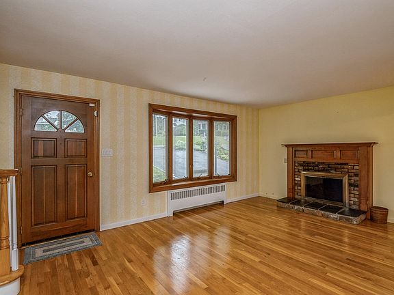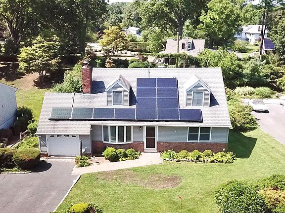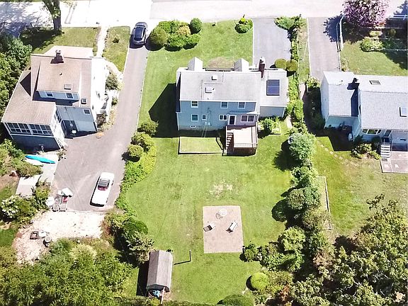 Lovingly maintained home with 5 bedrooms ( 3 upstairs, 2 main level ) 2 full bathrooms ( 1 upstairs, 1 main level ) living room with gas fireplace, dining room with ductless AC, eat-in-kitchen with dishwasher, new refrigerator, gas cooking & door to deck (electric awning 'as is') overlooking the serene backyard with 6 zone sprinkler system, full dry basement with utilities, laundry, new slop sink & pump, updated 150 amp electric. 5 Year Young Leased Solar Panels. Cesspool serviced & repaired June 2022. 1 car attached garage. Located in the sought after Beachcroft Community - Association Dues $1,000 per year - Includes snow removal for the street, along with private beach & mooring.