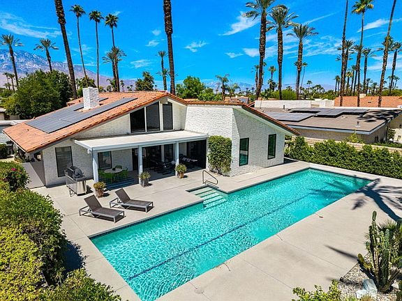 Fabulous Rancho Mirage Vacation Retreat in Presidential Estates Located in the heart of Rancho Mirage, this stunning home is set within the quiet, gated community of Presidential Estates. Designed with modern style and comfort in mind, it features floor-to-ceiling windows that seamlessly blend indoor and outdoor living. The spacious living room boasts vaulted ceilings, a cozy fireplace, wet bar, and expansive views of the sparkling pool and outdoor entertaining area. The gourmet kitchen is fully equipped with abundant cabinet space, an island, and everything you need for hosting or enjoying relaxed meals at home. A formal dining room offers the perfect setting for gathering with family and friends. The luxurious primary en-suite includes a split king bed with individually adjustable tilt. Two additional en-suites provide ideal guest accommodations one even offering a private office space and sofa. All bathrooms have been beautifully remodeled with a sleek, modern design. Step outside to your private backyard oasis featuring a lap pool with water features, spacious covered patio, full-size Weber gas grill, and seating areas perfect for lounging or entertaining. Residents and guests also enjoy access to the community tennis courts, pool, and spa, while the home's owned solar system provides added efficiency. Situated directly across from Mission Hills Golf Course, this home places you minutes from world-class golf, dining, and shopping. Don't miss the opportunity to experience this fabulous Rancho Mirage seasonal rental!