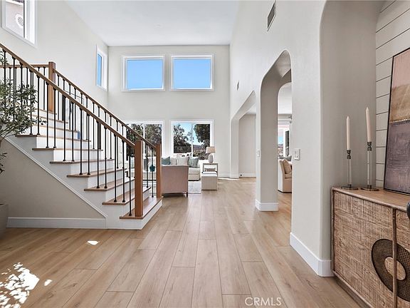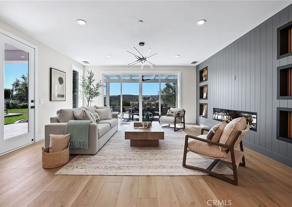 Welcome to this completely remodeled residence, where timeless architecture meets modern sophistication and breathtaking canyon and hillside views. The exterior captivates with stone accents, manicured landscaping, and a private gated courtyard leading to the entry. A three-car garage and classic clay tile roof add to the home’s striking curb appeal. Inside, soaring ceilings and expansive windows fill the living areas with natural light. The open concept living room features a sleek fireplace, while the formal dining room is enhanced by a designer chandelier and seamless access to the backyard. The chef’s kitchen is a true centerpiece, showcasing a large island, premium stainless-steel appliances, and custom cabinetry. A secondary prep kitchen adds convenience for entertaining. The family room highlights a modern linear fireplace with illuminated niches and sliding doors that frame sweeping canyon views. The home also offers a downstairs office and an en-suite bedroom ideal for guests or multi-generational living. Upstairs, a versatile loft provides a second living area, while two additional bedrooms include private en-suite baths. The primary suite is a sanctuary of comfort and sophistication. A spacious bedroom with accent panel wall and tray ceilings flows seamlessly into the luxurious spa-inspired bathroom. Here you’ll find a freestanding soaking tub, glass-enclosed shower with multiple rain showerheads, and a sleek dual vanity with LED mirrors. A cozy sitting area with its own fireplace enhances the retreat, while a private balcony captures sweeping hillside views. The backyard is an entertainer’s paradise with stunning views, a covered patio, built-in BBQ with bar seating, lush lawn, fountain, and fire pit surrounded by stone seating. Extensive upgrades include new windows and doors, new kitchen appliances, full home repipe with new drainage, and epoxy garage floors. All within the unmatched lifestyle of Coto de Caza—featuring award-winning schools, a premier Golf & Racquet Club, sports parks, dog parks, equestrian center, scenic trails, and dining just outside the gates.