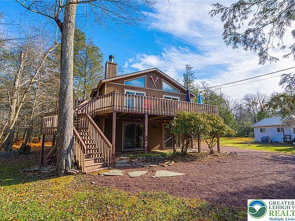 Welcome to this stunning 4-bedroom, 2-bathroom home offering nearly 2,000 sq. ft. of living space in a highly desirable lake community. FULLY FURNSHED and designed for comfort and style, this property features granite countertops, engineered hardwood flooring in the dining and living room, and a spacious game room perfect for entertaining. The living room and master suite, both have inviting cathedral ceilings with lots of windows and natural light. The master bedroom includes sliding doors leading to a generous upper deck, creating a seamless indoor-outdoor retreat. Located within close proximity to the lake, this home provides easy access to year-round amenities: a 190-acre lake, clubhouse, bar and restaurant, pool, boat rentals, basketball and tennis courts, and community social events for all ages. Beyond the community, you're just minutes from the Turnpike and I-80, with nearby attractions including skiing, casinos, skirmish paintball, whitewater rafting, and more. Whether you're searching for a primary residence, weekend getaway, or investment property, this home checks all the boxes. Don't miss the chance to make it yours!