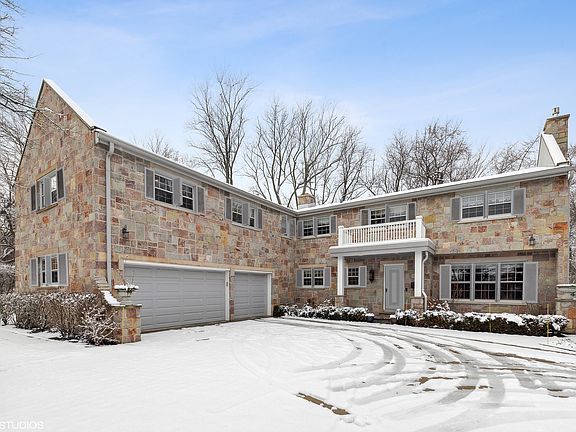 Nature's Paradise! This five-bedroom home sits on just under an acre of lush, wooded private property, set on a private lane overlooking the forest preserve. A welcoming foyer invites one into this special home with a flexible floor plan. The center of the home is an oversized, well-appointed kitchen with wood cabinetry, a large island and top of the line appliances including a six burner Wolf Stove. The kitchen space opens to a grand family room, with a fireplace, which leads to a delightful, heated sunroom and a brick walled patio. A separate formal dining room overlooks the picturesque, idyllic rear of the property. A cozy, charming library with another fireplace completes the first floor. A large, bright 23X18 additional multi-Purpose room, with high ceilings, is located above the three-car garage. Conveniently accessible from a second staircase, the multi-purpose room is currently being used as a large exercise room and office. A spacious primary suite area includes a fireplace, and a luxurious bath with a separate sauna. Four large additional bedrooms and two baths and a laundry room complete the second floor. A warm, peaceful retreat, inside and out!