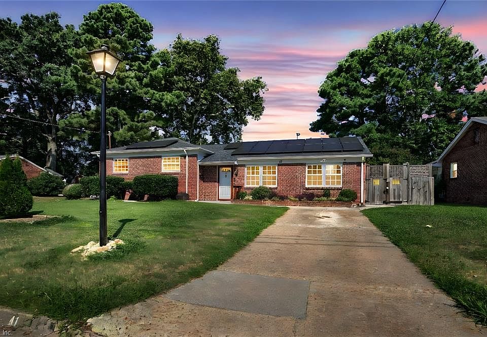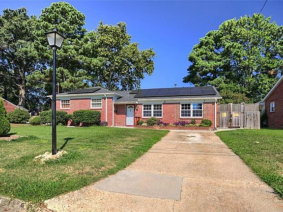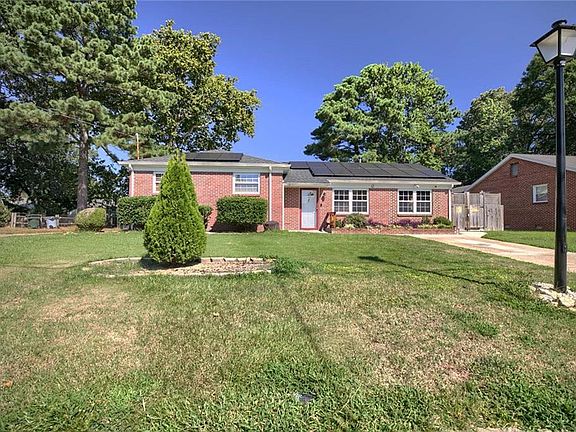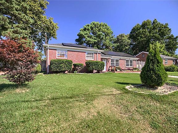 Welcome home to this 3 BR 1 Bath Brick Rancher with Den. New Trane Heat/AC, Updated roof with solar- electric bill usually runs $20.00 to $30.00 monthly saving thousands per year in utility costs. Large, detached garage with driveway and 2 newer outbuildings. Covered patio, privacy fenced backyard.