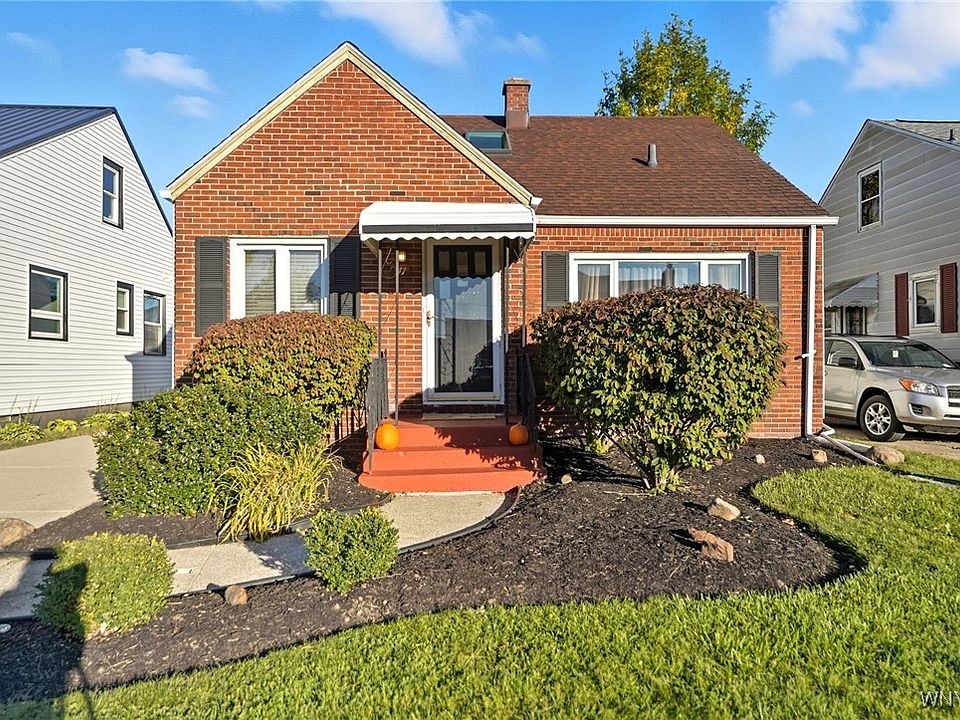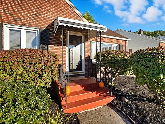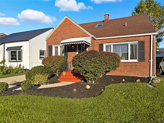 Let's move you in...to this fantastic Cape in the Town of Tonawanda! Located on a quiet neighborhood street, but minutes away from all the restaurants, shops, grocery stores, and conveniences of Kenmore & Delaware Ave! The curb appeal is evident with low maintenance landscaping, and a winding path that leads up to your large living room. The eat-in kitchen is bright with white cabinets, with all appliances included. Full bathroom and two bedrooms finish the 1st floor. Upstairs, is your own private sanctuary, with sitting area, large primary bedroom, walk-in closet, and updated bathroom complete with skylights. Downstairs, the finished basement is perfect for entertaining, with warm wooden paneling, and a built-in bar with granite countertop. The additional furnished room is currently being used as an office, but would be an excellent guest suite, home gym, studio, or playroom! Outside, is your fenced backyard, complete with large concrete patio and detached garage. Showings begin at 1st Open House on Thursday 10/23 from 4-6. 2nd open house is Sunday 10/26 from 10-2. Negotiations begin Wednesday 10/29 at 3pm.