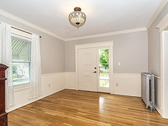 - Din Dscrp: Flooring - Hardwood, Wainscoting, Lighting - Overhead, Crown Molding, Pocket Door