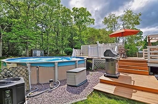 This is the one you have been waiting for. Beautiful colonial in fantastic end of cul-de-sac location. This 4 bed 2.5 bath has it all. Large open concept kitchen with granite counters, recessed lighting & stainless appliances. Kitchen opens to family room that has fireplace and hardwood floors. The living room has hardwood floor and opens to your dining room & large, sunny glass heated sun room. Slider off the kitchen opens to your deck with park like backyard with above ground heated pool. The 4 bedrooms have ample closet space. The master bedroom has bathroom w/granite counter and large walk in closet with extra room over the garage perfect for office/workout room. The finished basement is perfect for entertaining, play area or home theater. Central air, 2 car garage, irrigation system, passing title V and 1 year old roof are some of the added bonuses. So much more to see. Don't delay...this home won't last. SHOWINGS START AT THE OPEN HOUSE ON 6/4 FROM 1-2:30.