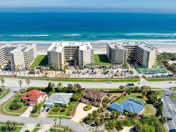Custom built, single owner home with an ocean view in Ponce Inlet. This beauty is tucked away in a quiet neighborhood between A1A and Timucuan Oak Garden Park. Enjoy a view of the Atlantic from both of your second story, covered balconies. Double primary bedrooms with walk-in closets and ensuite bathrooms as well as sitting area complete the upstairs. Downstairs you will find a den, a sizable third bedroom, third full bathroom, large living room, formal dining room, kitchen and laundry room. Throughout the home, you will notice refined details such as hardwood floors, 10' plus ceilings, crown moldings, granite countertops, glass tile backsplashes, custom cabinetry, glass shower enclosures, recessed lighting and windows facing all four directions that flood the home with natural sunlight facing all four directions that flood the home with natural sunlight. Outdoors, you will find an East facing backyard patio surrounded by mature hedges that provide both beauty and privacy. On a large lot, there is plenty of room for a pool, spa and outdoor kitchen. New Roof 2023. Beach access just across A1A with restrooms, showers and parking. Timucuan Oak Garden Park, just yards away, offers walking trails, picnic facilities, fishing dock and kayak & canoe launches. This is a beautiful home in a superb location!