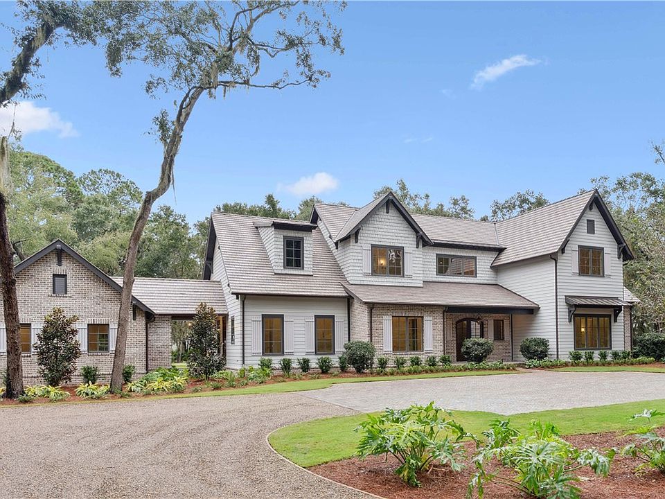 Experience elevated living in the heart of the exclusive Frederica Township—a premier neighborhood known for its privacy, beauty, and timeless charm. Set on 2.22 acres, this architectural gem offers 5,296 square feet of refined living space where thoughtful design and natural elegance come together in perfect harmony. A sweeping circular drive welcomes you home, while inside, the open-concept living and dining space is bathed in natural light and centered around a sleek fireplace — designed for both upscale entertaining and relaxed everyday living along with warm Western Red Cedar accents that set a striking tone. The main level boasts a tranquil primary suite with spa-caliber finishes, along with an additional guest suite offering flexibility for visitors or multigenerational living. Upstairs, three spacious bedrooms each feature their own private en-suite bath, ensuring comfort and privacy for all. Step outside to your own resort-style escape: an expansive patio with a tongue-and-groove wood ceiling, a fully equipped outdoor kitchen, and a sparkling pool with tanning shelf and hot tub—all surrounded by the serenity of lush, private grounds. With three garage spaces, high-end finishes throughout, and a setting that balances luxury with laid-back Lowcountry living, this home in Frederica Township delivers an unparalleled lifestyle. Built by Flanagan Development, one of the most sought after luxury builders in the area.