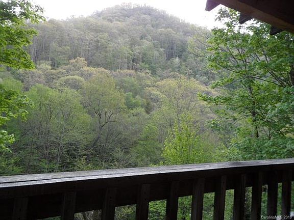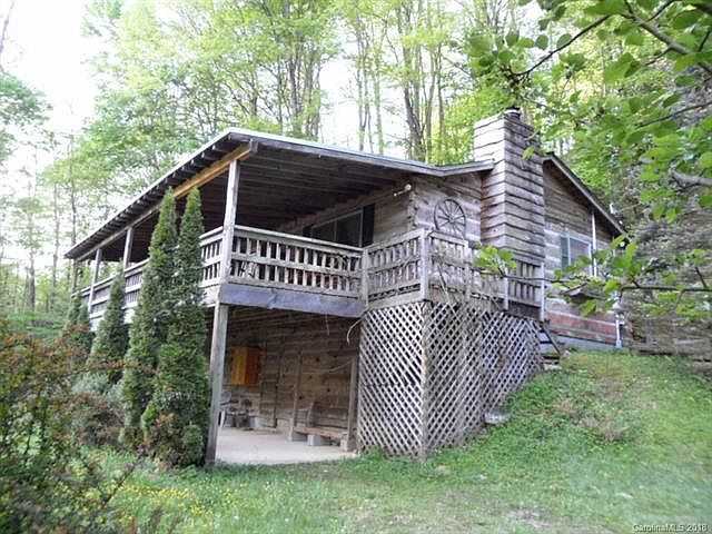 A true Smoky Mountain log cabin; charming with rustic style. It is nestled in the woods & just up above a rushing mountain creek. Even though the creek is not on this property it provides year-round enjoyment of listening to the soothing sound. Offering all one level which enhances the feel of the sf. Rustic wood throughout & fireplace. The front covered porch is extra large (11' x 36') & offers a peaceful setting to enjoy the natural setting, chirping birds, & distant rushing creek. Just go down below to the lower patio & hop into the hot tub. There is a small level yard area on the side. The parking area offers ample room & turn around area. This home sits just above a state maintained road. The location is ideal for the outdoors persons; ATVing, hiking, elk watching, & sightseeing. Near the Blue Ridge Parkway, Harrah's Cherokee Casino, & The Great Smoky Mountains National Park. Just minutes to the heart of Maggie Valley which offers restaurants & shops.