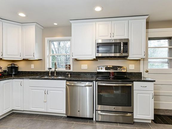 OH Sunday, April 7th 12-2. You'll love this delightful ranch with breathtaking views of Newton Pond! This home has been renovated (top to bottom) blending the charm of yester-year with all the modern conveniences of today. 4 bedrooms, 2 full baths including master bath, finished walk-out basement, (including family room/play area and an office/den), an over-sized one car garage, first floor laundry room, TWO fireplaces, hardwood and tile flooring. Storage needs? convenient walk up attic and SO MUCH storage throughout the house and garage. Do you like outdoor living? The new extra large deck offers a great launching area to the fenced-in level back yard which is perfect to entertain or play. See list of Updates which include New Kitchen, Bath, finished basement, furnace, deck, hot water heater, interior paint, and lighting. Prior to current owner, the roof, windows and septic are all newer 2005-2006. Conveniently located to 290, shopping, schools and more.