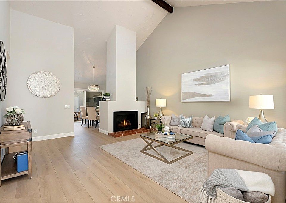 Meticulously Upgraded SINGLE-LEVEL home, offering 3 bedrooms and 2 baths in the vibrant heart of Irvine. Every detail has been thoughtfully crafted, from High-End Laminate Flooring to custom Cabinetry, fresh Paint, and New windows throughout. The home is bathed in natural light, thanks to high ceilings and strategically placed skylights that create a bright and airy ambiance. The living room, centered around a welcoming fireplace, exudes warmth and charm. Just beyond, a separate dining area, adorned with a new timeless classic chandelier, is perfect for family meal gatherings. The kitchen is a true delight, featuring a trey ceiling, New white custom Cabinets, and elegant Quartz countertops. Enjoy preparing meals while overlooking the private patio, with the added convenience of direct access to the oversized two-car garage. A generously sized, airy front bedroom offers double access from both the living room and the hallway, complementing the equally bright and inviting second bedroom. The primary suite features an expansive wall-to-wall closet and an en suite bathroom complete with upgraded vanity. Quiet premium end unit while being centrally located near everything you need—Restaurants, Supermarkets, and Shopping. Located within the award-winning Irvine School District, it's just a short walk to Deerfield Elementary School. Enjoy easy access to the 5 and 405 freeways, the Airport, World-Class Shopping Centers, iconic OC Beaches, and top-tier Parks, and Entertainment and Sports venues.