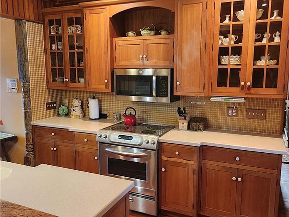 Cherry Kitchen-Morris Black&Sons, Corian counters & sink, granite bar, KitchenAid Ref. & Stove, JennAir D/W, garbage disposal.
