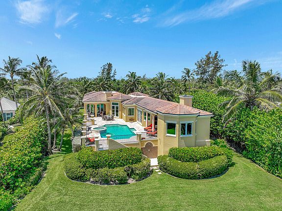 Welcome to your secluded paradise on the prestigous JUPITER ISLAND! This 5 bedroom, 4 !/2 bath, OCEAN FRONT home offers the pinnacle of luxury living! Nestled amidst lush landscaping, this retreat guarantees the utmost privacy. Safety and resillience are of papamount importance, which is why this home features impact windows that provide both protection and energy efficiency. The seperate guest house features 1 bedroom, 1 bath and a kitchenette providing a private haven for guests. Step outside to your personal oasis :a pool with sparkiling waters that mirror the nearby ocean, an outdoor shower to rinse off after a refreshing swim. Elegance abounds in the details of this home. The kitchen boasts granite counter tops, plantation shutters add a touch of southern charm!