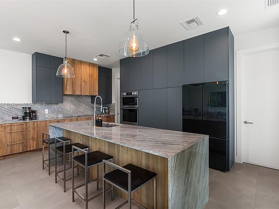 With over 2,200 sq ft of usable living space this home balances modern design with everyday comfort. Open, loft-like spaces with soaring ceilings create a bright, minimalist backdrop. The chef’s kitchen is both stylish and practical, featuring quartzite counters and a 10' island that anchors the living space. The primary suite feels like a retreat, with a walk-in closet and spa bath showcasing Italian fixtures, including the Rapsel Arne soaking tub and Fantini dual showers. The home offers 3 bedrooms + detached cabana with kitchenette and full ensuite bath. Outdoors, enjoy a heated saltwater pool and gardens, solid concrete construction, impact glass, solar, EV charger, elevated setting with no flood insurance required by FEMA, and all just minutes to the Drive. 2 car garage.