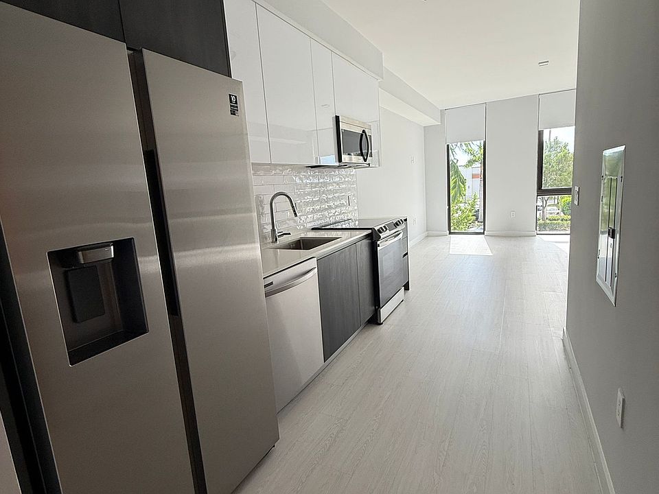 Discover a new standard of living in Dania Beach, where sleek design meets a vibrant lifestyle. This modern residence is thoughtfully crafted with comfort and sophistication in mind, featuring floor-to-ceiling tinted windows that bring in abundant natural light, soaring ceilings, and the option of a private balcony or den to expand your living space. A chef-inspired kitchen with stainless steel appliances, quartz countertops, and a spacious island creates the perfect setting for both everyday meals and entertaining, while walk-in closets, spa-like bathrooms, and an in-home washer and dryer add effortless convenience.