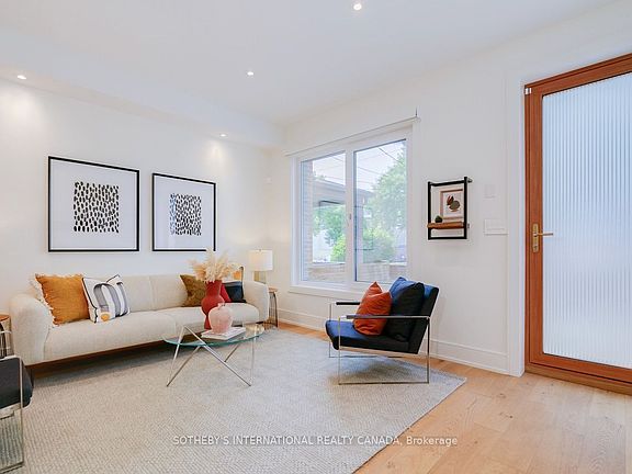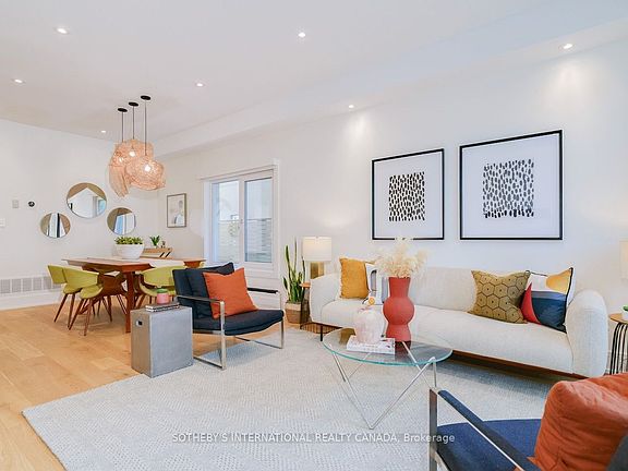Striking modern masterpiece in the heart of Queen West, this rare Passive Home is designed for both style and sustainability. This ultra energy-efficient home offers over 3,000 sq. ft. of above-ground living space, where sleek finishes and thoughtful details create an elevated urban lifestyle. The main floor welcomes you to an airy open-concept layout, highlighted with wide-plank hardwood floors, a staircase with glass railings, custom oak cabinetry, and designer LED lighting. The chefs kitchen is a show stopper featuring integrated high-end appliances, stone counters, a dramatic backsplash, and an oversized island with seating. The adjoining family room with walkout to the back patio creates a seamless indoor-outdoor connection. Upstairs, soaring 9-foot ceilings continue the sense of openness boasting a serene primary suite with walk-through closet, built-ins, a spa-like 4-piece bath, and large windows overlooking the private terrace. This level also includes a second bedroom with its own ensuite and a full laundry room. The third floor offers a stunning secondary primary retreat, complete with a 5-piece ensuite with soaker tub, walls of closets, and direct access to a private rooftop deck. An additional large bedroom with ample closet space completes this floor. Bathrooms throughout feature premium fixtures by Gessi, Toto, and Nobili, with modern floating vanities and wall-hung toilets. The lower level, with separate entrance, is equally impressive with spacious living/dining area, 4-piece bath, and a generous bedroom, ideal for an in-law, guest, or nanny suite. A detached two-car garage wired with EV charger outlet and rooftop terrace enhances the outdoor lifestyle of this property. Just steps to the vibrant shops, cafes, and restaurants of Queen West and Ossington, and minutes to the upcoming King-Liberty GO Station, this home is the perfect blend of luxury, convenience, and urban energy.