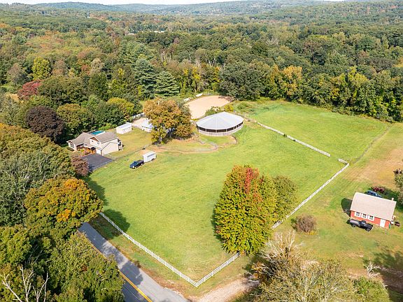 Ever dreamed of having your horses at home? Here is your chance. Lovely small horse farm with big farm amenities! Approx. 120x220 outdoor well maintained sand ring, covered 60x85 arena with lights to keep your horses fit through the winter. Super large field for additional riding, x-country course, jumping, western pleasure, or just grazing. Current owner gets 250-300 bales of hay, if you so desire. Hay shed on property. 4 stall barn, with possibility of 5th stall. Some paddocks have auto watering. 2 tack rooms. For summer pleasure there is a nice pool as well. Enter the home via a covered 9x9 front deck leading into a huge mudroom. Here you will find lots of closets, your 1/2 bath, laundry and access to a fabulous 17x10 3 season porch overlooking pastures, horses and the barn. Large, well appointed eat in kitchen leads into the formal DR. DR is open to the living room with nearly floor to ceiling windows, a perfect space for entertaining. On this level you also have 2 bedrooms and a handicapped accessible bath. Continue to the second floor with a massive finished flex room space. Perfect to create a primary bedroom suite with bath and walk in closet. Also easy to add 2 bedrooms, or family room, playroom, media room, guest suite or..... Possibilities are endless to create the space of your dreams. The home and property are well maintained, generator equipped and on a dead end street, with very limited traffic. The property is fully (animal safe) fenced with wood, round pen panels and chain link (for front yard). A truck and trailer can easily access the property from the street. Equestrian trails are across from Oakwood Lane, Hop River Road trail head. And let's not forget Columbia Lake accessible for all Columbia residents, for swimming, kayaking, stand up paddleboarding and so much more. Well, septic and roof are less than 10 years old. Roof has heating coils and gutter guards. There are hardwood floors on the main level. Current owner has dogs and wanted to preserve the wood floors, hence added laminate (easy to remove) This is truly a terrific way of life, yet still convenient to all shopping, schools, close to Rt 2, Rt 6 , Rt 384, Rt 66, Hartford, Glastonbury, Willimantic and even Middletown. Easy study or catch a game at UCONN. Come see for yourself.