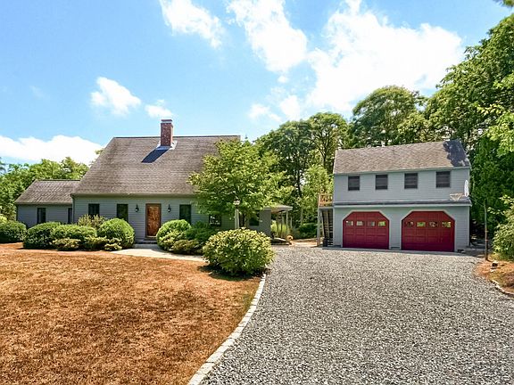 Private 1.58 acres Harwich retreat located on the quaint ''Road to Obed Brooks Store'' designed and built in 1985 by the current owners to raise their own family. This ''must see'' property features 4 bedrooms, 2.5 baths, 2 gathering areas, dedicated dining room, renovated kitchen with stainless steel appliances and quartz countertops, first floor primary suite, and air conditioning throughout. Sounds great? Wait until you see the incredible rear yard oasis featuring a large deck overlooking the inground vinyl pool, flower and vegetable gardens. The detached 2 car garage offers ample storage and a 2nd floor billiards room for rainy days. Stone's throw to Cranberry Valley Golf Course and Monomoy Regional High School.