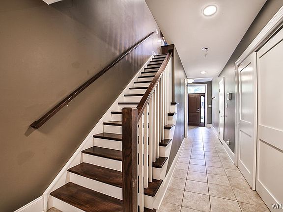 Luxury rental, 3 bed, 3.5 bath townhouse in the heart of the Buffalo Waterfront, available immediately. Five-minute walk to bike & fitness paths, sports venues, restaurants, marina, downtown. The three-story unit has exceptional amenities: hardwood floors, built in Sonos speaker system, cityscape views, balcony with gas grill, first level patio with access to ample greenspace, keyless entry, optional security system, stainless appliances, gas grill, two gas fireplaces, two car garage, California Closets in bedrooms, pantry, and coat closets.