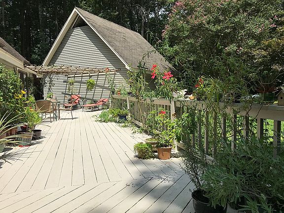 Motivated seller! Call or text Jennifer at (804) 514-7502 for a private showing. Calling all nature lovers! This Contemporary style A frame home is nestled on 5 wooded acres with mature gardens, a mossy yard, and a trail that winds down to a creek. The home boasts a huge wall of windows looking onto a sunny great room, three large bedrooms with walk-in closets, two with their own full bathroom and two that walk out onto the deck, a gorgeous kitchen with modern appliances including a gas range and oven, an enormous wrap around deck for dining, reading, entertaining or simply relaxing, and a two car garage with a bonus room above. The home is energy efficient with a new heat pump and woodstove, and easy to maintain with vinyl siding. A wood shed and gardening shed add convenience and storage. The home is set in the middle of the woods on 5 acres with ample privacy and yet is conveniently located within 5 minutes of schools, amenities, and a boat put-in on the Mattaponi River. The home is located in the middle of King William county just 25 minutes from West Point, Tappahannock, and Mechanicsville, and 45 minutes from Richmond, Williamsburg, and Ashland. Internet reception is strong and I stream videos with no buffering.