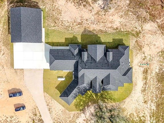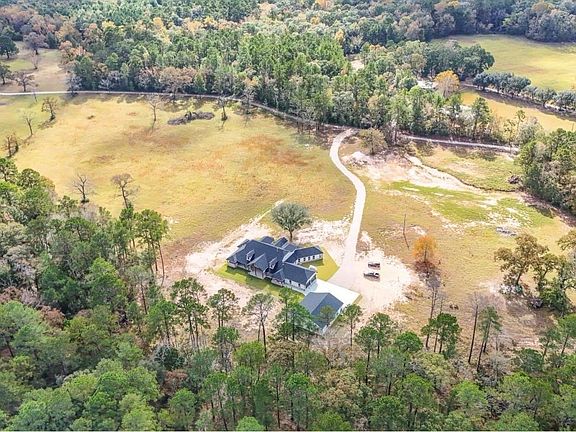 Welcome to this beautiful home on 8.5 acres, 4+ bedrooms, 4 bathrooms, 2 1/2 baths. Beautiful open-concept with high ceilings, beams, brick & stone throughout. Gas fireplace, custom entertainment center, wet bar area. The gourmet kitchen offers an expansive island, walk-in pantry with custom cabinetry, butler pantry, wine bar, desk area behind kitchen. All cabinetry offers a soft close. The primary suite features large, beautiful windows, a spa-style bath with soaking tub, beach entry shower, makeup area, island in master closet. Over-sized secondary master with tub/shower combo and walk-in closet. Also 2 Guest bedrooms, hall bath w/shower only, walk-in closets. Upstairs offers 2 offices, media room, full bath, hunting room. Detached garage with 2 regular size bays, one RV bay, outdoor kitchen area with porch, storage. No restrictions, horses & cows welcomed. Small pond. Entire downstairs is ADA compatible.