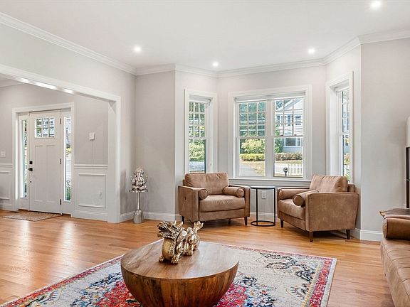 Nestled in vibrant Burlington, this stunning 5-bedroom, 4.5-bathroom home redefines luxury living, perfect for large families seeking comfort and style. Ideally situated near top schools, shopping, dining, and recreation, it's just a 10-minute walk to Mill Pond and Mill Pond Conservation Area, offering scenic trails for running, hiking, or leisurely strolls. Spanning three levels, the home features all five bedrooms on the second floor, including two primary suites and three additional bedrooms. The first floor impresses with 9-foot ceilings, a gourmet eat-in kitchen with a 10-foot island, and a family room with a gas fireplace and large glass doors that invite natural light. The finished lower level boasts a bright media/playroom, exercise room, home office, and a full bathroom. Set on a half-acre lot backing onto conservation land for privacy and nature, the home includes a garage with an EV charger.