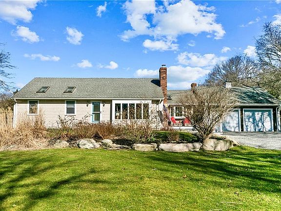 Little Compton presents an adorable single-level, 3-bed, 2-bath home on a private 2-acre lot, set back from the road and abutting 60 acres of conserved land on two sides. The property offers picturesque surroundings, mature plantings, and privacy. The southern exposure, coupled with large windows and skylights, fills the home with natural light, creating a bright interior atmosphere. The open floor plan connects the living, dining, and kitchen areas, creating a harmonious space for relaxation and entertaining. The kitchen boasts stainless appliances, a propane stove, and ample storage space. The home features a master bedroom with a bathroom and hardwood floors. The front sitting room has vaulted ceilings, a wood stove, and access to the rear deck overlooking the private backyard, while the front living room has a gas stove, large windows, and overlooks perennial gardens. The level, cleared backyard offers room for a pool, accessory dwelling, or expansion possibilities. Enjoy the serenity of your own private oasis while remaining just a short distance from essential amenities, schools, beaches, neighboring coastal villages, and recreational opportunities. Schedule a viewing today and let this charming abode welcome you home. Turnkey Option Negotiable. Broker owner. Buyer pays LCAT. Recent updates, see disclosures.