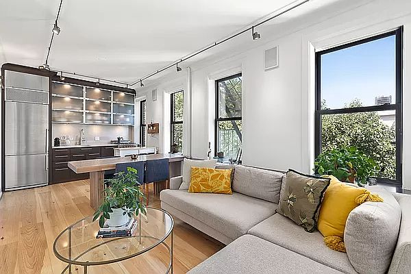 In the heart of the West Village, on one of the most beautiful blocks, sits 41 Perry Street apartment 5AB. This delightful two-bedroom, one-and-a-half-bath combination unit is a rare find in the West Village with its 9-foot ceilings and pre-war charm. The living area boasts four windows across with tons of light, sky, and trees for your enjoyment. The open kitchen features granite countertops, stainless steel appliances, dishwasher, gas stove, microwave, and tons of cabinetry inspiring your inner chef. The primary bedroom has a full-size bath en-suite and can easily fit a Queen-size bed. There is a dressing area/walk-in closet from the bedroom into the bathroom which has your own washer/dryer combination unit and plenty of space for all of your stuff. The full-size bathroom is windowed with a mirrored vanity for all of your items. The second bedroom is found upon entering the home and is currently used as a guest room/office. The wall of closets that connect the second bedroom to the living area also contains the half-bath and gives you plenty of storage. All of this plus hardwood flooring throughout, central air conditioning, and a home that is whisper quiet make this an exceptional apartment and a rare find. 41 Perry Street is a stunning pre-war co-op built in 1910. This low-rise, walk-up building contains 20 residences, is six stories, and has a voice intercom. This flexible co-op allows co-purchasing and pied-a-terre purchases. Pets and subletting are also permitted. Apartment 5AB is four flights up on the fifth floor.