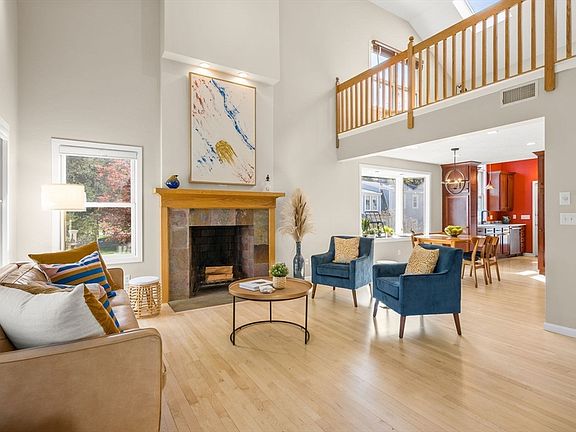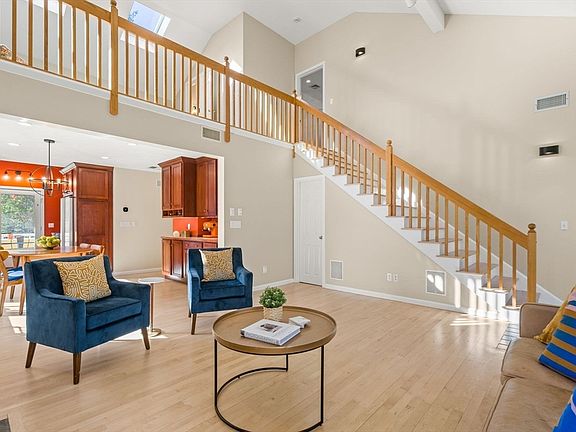 Graciously modern farmhouse set on Ponkapoag’s neighborhood located a block from the golf course is boundless with natural sunlight. This home welcomes you with cathedral ceilings, 2 grand fireplaces, overlook loft space, 4 skylights, open floor plan, bay window, kitchen that unfurls onto generous sized deck, in wall speakers in almost in every room for entertaining with ease & pick between 2 primary suites on separate levels creating privacy. Take in a movie or play your favorite album in the open floor plan family room complete w/ cozy fireplace bench that leads to sliding glass doors unto the patio with veggie gardens, flexible use direct entry office spaces advantageous for working from home or creative space. Enjoy serene hiking trails, canoeing, foraging and camping in the Blue Hills, all at your doorstep. Eateries such as Northern Spy & Trillium Taproom are all local. Convenient access to 95, 93 and 5 mins to Rt 128 Westwood Commuter rail & Amtrak into Boston