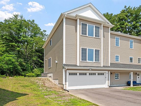 Prime Location for this better than new end unit on corner lot. Inviting entry provides coat closet, storage area & access to garage. Hardwood stairs lead to the main floor drenched in sunlight. High ceilings, large windows & hardwoods flow from fireplaced living room, through the spacious, open dining area to the kitchen which boasts solid cabinets, quartz counters, tiled backsplash & upgraded appliances. Sliders off kitchen to composite deck overlooking wooded area. Main floor also has a home office or den, additional closet space and half bath. Third floor with 3 spacious bedrooms. Main bedroom with walk-in closet, full bath with tiled shower & glass door, double vanity, & linen closet. Laundry area conveniently located on bedroom level. All solid doors on bedrooms & bathrooms. Attic with storage space. Minutes to Rt 146 & centrally located between Providence & Worcester. Ample parking allows for 4 cars + garage space. This large, spacious unit is a must see and move in ready!