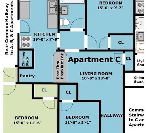 - Exterior features: Heating: Gas, Hot water included in rent, Wifi internet, laundry, parking
