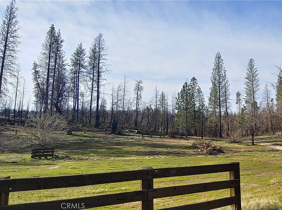 down. Recently installed new well from the pump at the bottom with new wiring and pipe all the way up to the new plumbing, pressure tank. The well is a big producer and was just certified. There is a nice 20 x 30 metal building currently being used for storage. Level graded rv spot and a lawn is ready to go. Large fenced in garden area with 7’ high locking chain link gates. Existing landscaped lawn with living grass, flowers and bushes. ATV trails throughout the property. This property was effected by the bear fire but does have remaining green trees.
