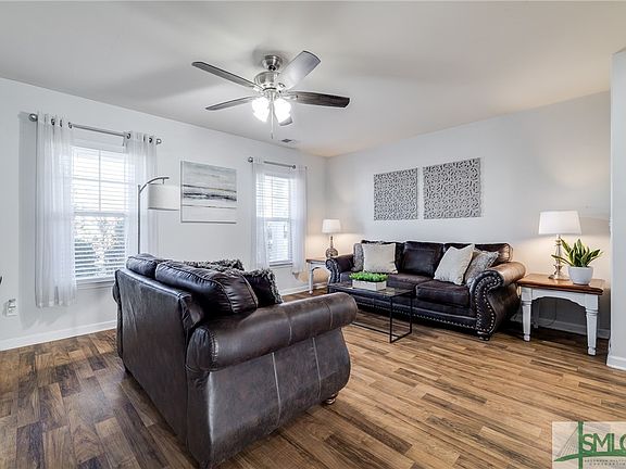 Welcome Home to this Adorable 3 Bedroom 2 1/2 Bath Fully Fenced Turn Key Home Located In Highly Desirable Location and Amenity Filled Subdivision! Inviting Covered Front Porch Entry to this Open Floor Plan Filled with Many Features and Accents Including Vinyl Wood Flooring, Spray Foam Insulation, SS Appliances, Large Living Room and Spacious Eat in Kitchen and Breakfast Area, Breakfast Bar, and Lots of Counter & Cabinet Space! Upstairs you will find the Huge Owners Suite with a walk-in Closet and 2 Additional Bedrooms! One Car Garage and Walk to School, Shopping, Restaurants, and Minutes to I-95, Gulfstream, Ga Ports, Tanger Outlets, Savannah Intl Airport, and Minutes from Downtown Savannah! Amenities Include Pool, Playground, Clubhouse, and Fitness Center!