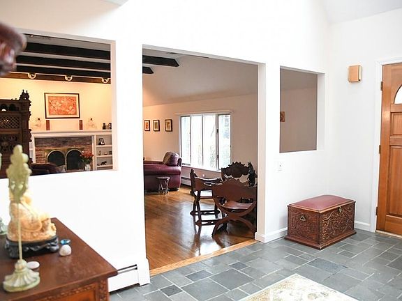 BEST DEAL IN TOWN! Step into this PEACEFUL AND SERENE home featuring 9 rms,. including 5 bedrooms with a flowing floor plan.The foyer opens to the spectacular living rm with inviting fireplace enhanced by custom built in cabinetry and formal dining rm. Eat in kitchen with sunset views opens to a fireplace. Dramatic Great Room with sliders to expansive deck just waiting for an afternoon barbecue! Private screened in porch to sip your morning coffee while enjoying nature at its best! The flexible floor plan offers a first floor master with bath and an additional bedroom/den,plus three additional bedrooms and full bath on the second floor.The lower level rec room is perfect for family entertaining or a game of pool! This expansive home incorporates a warm blend of contemporary and traditional elements and is sited on a beautiful two acre lot! A terrific location close to train,schools and major routes! Come launch your canoe on the River!