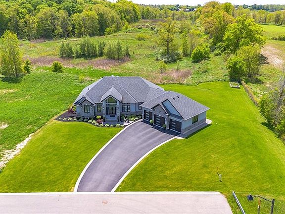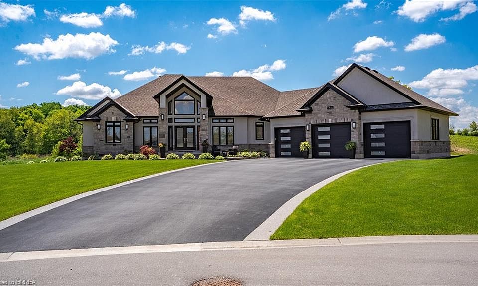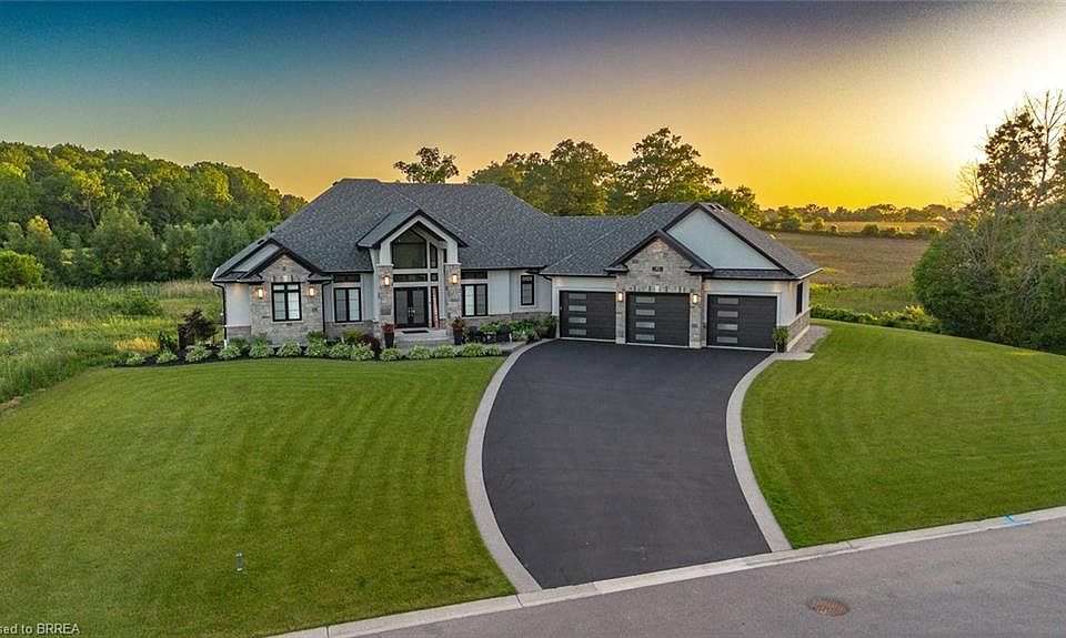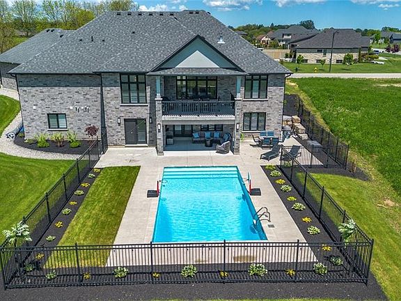 Tranquility is defined as being “Free from Disturbance" and no other phrase truly defines this home as perfectly as it does. Tucked away all by itself, in the most exclusive neighbourhood in all of Brantford, the Vallee Estates, there is no other property as private, luxurious and *tranquil* as this one is. We all live in the new world where home has become more than just a place to sleep- it’s become a place to LIVE, to entertain, to host and make memories in. Where you watch your kids grow and celebrate success together. Where you can't wait to get home after a long day, jump in for a swim and just melt into the backyard as you watch the sunset turn the sky on fire as it falls below the tree tops and you think to yourself: "this is all mine".. you've made it, Welcome HOME to 41 Ruijs. Stepping into the front door, you’ll immediately notice the sky-high cathedral ceiling above you and the polished tile floors below you, and everything else you would come to expect from a home of this caliber. The open concept floor plan turns the living area into the heart of the home, equipped with a chef inspired kitchen, waterfall island, floor to ceiling decorative fireplace, herringbone dining room floor, breakfast nook, pantry, and walk-out to the floating covered patio. Flow inside and out during all the summer events, that your new house becomes THE destination for, all summer long. With over FIVE THOUSAND SQUARE FEET of living space and a fully finished walk-out basement, this space really feels like more than just a house. Throw open the doors, turn up the music, and walk out to the pool deck to jump right in. The walk out basement gives this house that 'resort' feel- and the feeling isn't wrong! Wrapped with hand scraped concrete, landscaping and scenic views, with the water sparkling all day long and the wind whispering "stay home today" you'll wonder how you ever lived anywhere else. Because this is *the place* that will make you feel like you’re finally HOME.