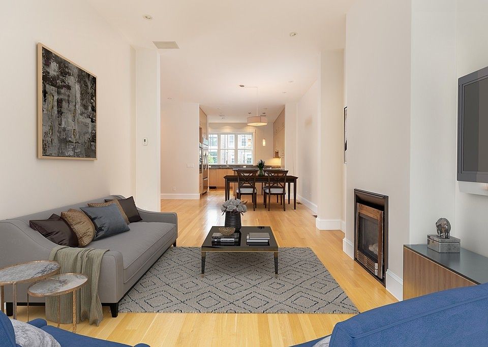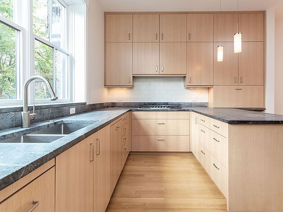High parlor triplex on Rutland Square! Entire building renovated to the bricks in 2011. This bright and cheerful parlor/street/garden home features three bedrooms, separate office, two full bathrooms (one master) plus powder room, well designed laundry room with laundry sink and organization. Prodigious storage and California closets throughout. The parlor level features 10 ft+ ceiling height, gas fireplace, and offers lovely views from the living room of historic Rutland Square. Chef's kitchen with Miele and Bosch appliances, soapstone counters, and a remarkable amount of cabinet and pantry space. Bathrooms feature Duravit and Grohe fixtures. Large windows and southwest exposure fill the the unit natural light. Wired for sound and data. Built in speakers in all living areas and bedrooms. Last but not least, there is a 350 square foot private patio with direct access to one deeded full parking space. This home has it all in one of the best locations in the city