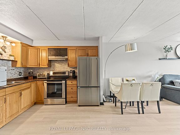 This charming and affordable one-bedroom end unit is ideal for first-time buyers, students, couples, bachelor, investors, or those looking to downsize. It features a bright open-concept living and dining area with a walkout to a large balcony, a functional kitchen with stainless steel appliances, a comfortable bedroom, and a large in-suite storage room. Located in a clean, well-kept complex, recent updates include brand new windows (2024), Stove (2024) and a window AC unit used for just one season (2025). The building offers on-site laundry, pet-friendly rules (under 22 lbs), and one designated parking space with the option to rent an additional spot. Low maintenance fees include all utilities hydro, water, heat, cable TV, internet, parking, and visitor parking. Conveniently close to Brock University, bus stops, the GO station, parks, and shopping