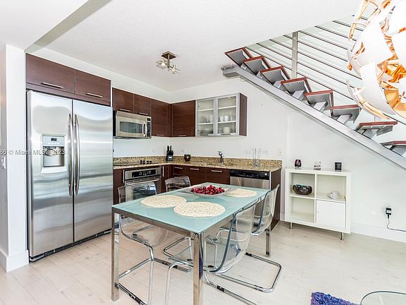 Stunning city view from this lovely, bright, two-story loft in the desirable heart of Brickell. Unit features volume ceilings, floor-to-ceiling windows, open plan kitchen with stainless steel appliances and granite countertops on entry level connecting seamlessly to dining and living spaces, and a guest bathroom. Open bedroom suite, full bath with double vanity, large closets, and washer/dryer on upper level. Unit includes one assigned parking space on the coveted 1st floor for easy exit. Steps to riverfront, metro mover; short walk to Brickell City Centre, Mary Brickell Village, Brickell's Financial District, supermarkets, shops, restaurants, nightlife, and downtown Miami. This full-service, pet-friendly building allows short-term rentals. Live or invest in one of Miami's hottest area.