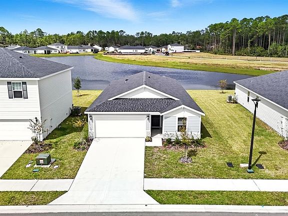 Under Construction. Move-in Ready! The Davenport floor plan in the sought-after Flagler Village community offers a thoughtful design featuring 4 bedrooms and 3 bathrooms, including a private in-law suite—perfect for guests or multigenerational living. Enjoy peaceful views of the community pond from your covered back patio. Take advantage of Flagler Village amenities—a cabana, resort-style pool, sidewalks & streetlights, and close proximity to Palm Coast Town Center and Flagler Beach. At the heart of the home is a chef-inspired kitchen designed for both function and entertaining, showcasing an oversized island with ample counter seating, extensive cabinet storage, granite countertops, and Energy Star® stainless steel appliances. The kitchen flows seamlessly into the dining area and spacious great room, ideal for everyday living or hosting gatherings. Retreat to the expansive primary suite, featuring a long walk-in closet and a fully equipped bathroom with dual sinks and a walk-in shower. Additional highlights include spray foam insulation for monthly energy savings and other smart home features. This is new construction you don't want to miss!