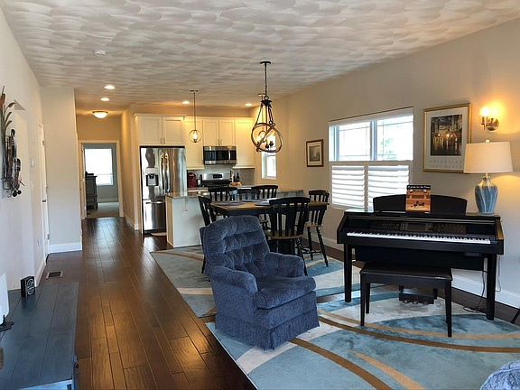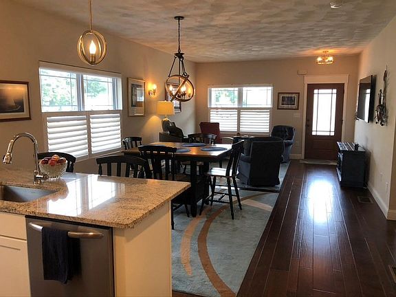 Welcome home to this lovely One level condo in the Reynolds Farm neighborhood. This young 2 bed end unit offers a thoughtful design with an open-concept living, dining and kitchen area with a large granite island, and stainless appliances. The primary bedroom features a beautiful tray ceiling, a private bath, walk in shower, walk in closet, pocket doors, and granite double vanity. The 2nd bath features a sun tunnel for natural light, granite vanity, and a tub/shower combo. Plenty of closets, drop zone, pantry, laundry on main level, custom window treatments, 1 car garage, and a huge basement for all your extra belongings. Relax on the front porch, and enjoy taking walks through this traditional neighborhood development.