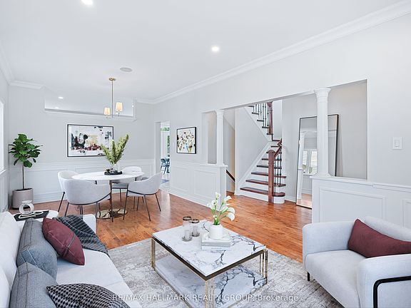 Discover contemporary elegance in this fully upgraded 5-bedroom, 4-bathroom residence, meticulously renovated with 150K in premium improvements. Featuring a fully finished basement, this home offers over 3,000 sq. ft. of total living space-thoughtfully designed for comfort, functionality, and style. From the moment you enter the welcoming foyer, you'll appreciate the attention to detail and the seamless blend of modern finishes and timeless charm. The main floor features an open-concept living and dining area highlighted by classic wainscoting and elegant design touches. A dedicated main-floor office provides an ideal space for remote work, while the cozy family room with a fireplace creates a warm and inviting atmosphere. The modern eat-in kitchen has been beautifully refreshed with new appliances, including a stove, dishwasher, and microwave/hood fan. Freshly painted cabinetry with updated doors adds a stylish touch, and from here, you can step directly into your private backyard retreat-perfect for entertaining or unwinding. Outdoor living is elevated with interlocked front and rear patios, a hot tub under a gazebo, a fenced dog pan, storage shed, and a trampoline, all included with the home. The backyard is designed for both relaxation and play. Upstairs, hardwood flooring flows throughout, complemented by elegant hardwood stairs. A second-floor laundry room provides convenience, while four spacious bedrooms offer generous space for family and guests. The primary suite is a private retreat, featuring a walk-in closet and a beautifully finished ensuite bathroom. The fully finished lower level expands your living space with a large recreation room, an additional bedroom, a full bathroom, and ample storage-ideal for a growing family, overnight guests, or a home gym. Additional highlights include a finished garage with epoxy-coated flooring and a heater, a central vacuum system, and a carpet-free interior for easy maintenance and enduring style.