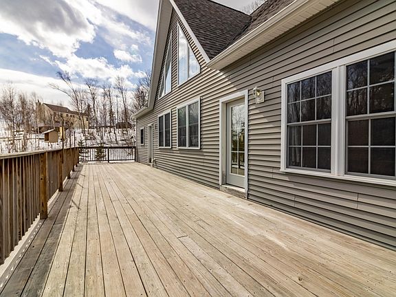 Private home on a dead-end road where you'll be surrounded by nature. Great place to enjoy birdwatching, with visits from deer, turkeys, and other wildlife. Huge deck with stairs to the fenced-in backyard, perfect for your pups. The 5+ acres host a fun treehouse out front for the kids to enjoy, with plenty of room to run and play, along with a quiet street for walks and bike rides. Easy access to snowmobile trails too! This is your piece of the country and is only 5 minutes from the Interstate! Step inside and find gorgeous Australian Cyprus wood floors throughout, vaulted ceilings, a handmade copper farmer sink, granite countertops in kitchen and bathrooms, custom made cabinets with mixer built into cabinet, large walk-in tiled shower with 2 shower heads, whirlpool tub, and walk in closets! Not to mention the bonus room in walk-out basement that can be used as a workshop, music or family room, or turned into a studio or in-law apartment. Plumbed and ready to add a kitchen and bathroom if desired, with a separate entrance. Come see this stunning home in the perfect location!