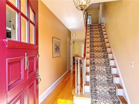 Everything you need in a pretty package! This move-in ready, center-hall Colonial provides the ideal location, indoor & outdoor living spaces, and timelessly tasteful design. Offering 5 bedrooms, 2,500+ sq. ft. of space, and gleaming hardwood floors, you begin at the combined dining and living room tied together with crisp crown molding. French doors open to the cook’s kitchen with ample cabinetry and stainless appliances, including double ovens and a hooded range. Relax in the family room or entertain outside along the half-covered rear deck, featuring beautiful columns and recessed lighting, that overlooks the professionally landscaped backyard. A mudroom and half bath complete the floor. The 2nd level has 3 comfortable bedrooms, including a spacious primary suite with 3 closets (one cedar) and 2 bedrooms with California closets, plus a small bonus room for an office or sitting area. The 3rd floor enjoys 2 skylighted bedrooms, while each of the upper levels has a full bath. Customize the partially finished basement for your live/work/play needs. Explore all the delights of the city! Shop/dine along Hope Street or in Wayland Square. Brown University and RISD are minutes away. Stroll along Blackstone Boulevard and Lippitt Park with its fun farmers market. A detached 2-car garage, plus easy access to the interstate and downtown train station put a perfect bow on this exceptional city abode.