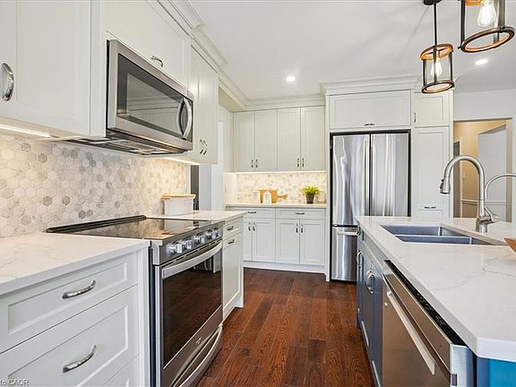 Welcome to this charming home in one of Mississauga’s most exclusive pockets, where two tree-lined streets wind gracefully along the Credit River. Upon entering, note the updated, beautiful front door with sidelights, plus the two-storey foyer providing lots of light with the open upper-level hallway. The main and upper levels feature stunning solid red-oak floors with a rich walnut stain filling the principal rooms with warmth. Natural light flows throughout the home! The extended, 20ft long, renovated kitchen features an island with a double undermount sink, more cupboard space, and dishwasher; a small-appliance bar, and room for a generous table in the eat-in area; plus walkout to the deck, gazebo, and pool. The spacious family room provides an electric fireplace and sliding doors leading to the beautifully landscaped backyard retreat with an inground pool. A convenient main-floor laundry/mudroom offers a side-door entry, plus a 2-piece powder room that completes this level. Upstairs, you’ll find four spacious bedrooms. The primary suite easily accommodates a king-sized bed, plus features a walk-in closet and an updated 3-piece ensuite with a separate shower. Three additional bedrooms share the renovated main 4-piece bathroom. The lower level offers even more living space, including a relaxing 26' recreation room, an exercise room, multiple storage areas, and a large unfinished space which was just recently updated with brand new insulation—ready for your creative vision. With direct access to the scenic 12 km Culham Trail along the Credit River and surrounded by friendly welcoming neighbours, this home is a rare find that blends comfort, charm, and community. Easy access to the 401 and 407. Walk to grocery, Tim's (20 min). Streetsville Secondary School district. Love where you live!