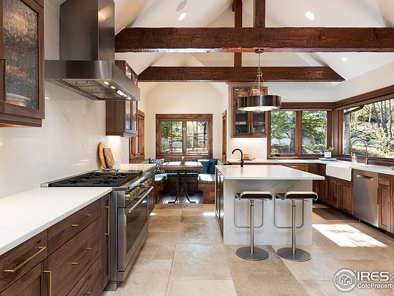 Situated at the end of a secluded cul-de-sac and just a short distance from downtown Breckenridge, this reimagined mountain retreat blends architectural sophistication with elevated functionality. Designed by Suzanne Allen Guerra and thoughtfully enhanced throughout, the residence offers both privacy and proximity-set against the backdrop of panoramic Breckenridge Resort views and direct access to hiking and biking trails. A completely custom kitchen by Summit Design features premium Mountain High and GE Monogram appliances, a Sub-Zero wine refrigerator, column-style refrigerator and freezer, and striking quartz and stone surfaces from Crossville Studios. New cabinetry by Cabinet Creek adds tailored elegance and smart storage, while the wet bar on the lower level invites relaxed entertaining. The owner's suite has been fully transformed with a spa-inspired bath and a gas fireplace, a private deck, an adjacent washer/dryer featuring Miele appliances, and laundry cabinets complemented by California Closets' custom systems. Additional highlights include a fifth bedroom addition, a newly designed mudroom, and a second laundry room in the lower level. A full-home Sonos sound system and Hunter Douglas window treatments elevate both ambiance and comfort. Outdoors, enjoy an upgraded Trex deck, a Bullfrog spa, and professionally curated landscaping by Alpine- complete with new sod, spruce trees, custom rock retaining walls, and an all-new irrigation system. The heated, oversized, epoxy finished 1,750 sq ft 4-car garage features 450 sq ft of additional storage. A new heated gutter system and roof heat tape offer year-round peace of mind. A residence where thoughtful design, premium materials, and timeless mountain elegance converge.