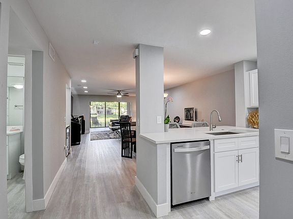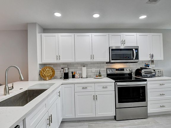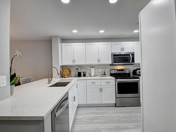 Stunning 2 Bedroom 2 Bathroom Totally Re Done. 1st Floor , Open Kitchen Concept, Quartz Counters & Breakfast Bar, Subway Tile Backsplash, LED Lighting Throughout, Wood Look Laminate Flooring, Primary En Suite Features Double Sinks, Large Step In Shower w/Frameless Glass Enclosure. Floor to Ceiling Glass Sliders Out to Serene Lake View. Steps to the Community Pool