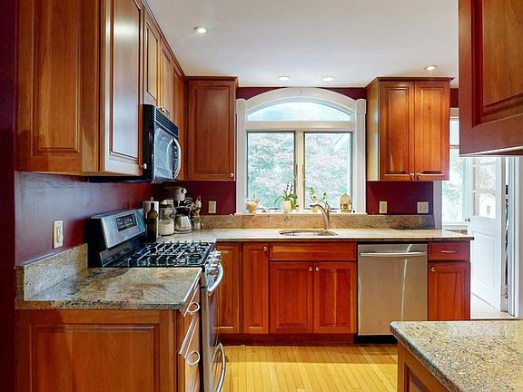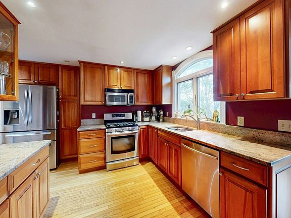 Lovely custom built ranch offering endless possibilities! Perfect for multi-generational living or added income with a fully equipped lower level apartment. The main floor features a cherry wood kitchen with granite countertops, a spacious fireplace living room, tiled bath with separate shower and tub, generous bedrooms, den, and a bright sunroom with ocean views. Enjoy central air and an attached garage. The lower level includes a kitchen, family room with sliders to a private yard and in-ground pool, two bedrooms, and a bath. Garage and mudroom could be converted into an ideal ADU for extra income or extended family. Fantastic location public transportation at one end of the street and beach access at the other!
